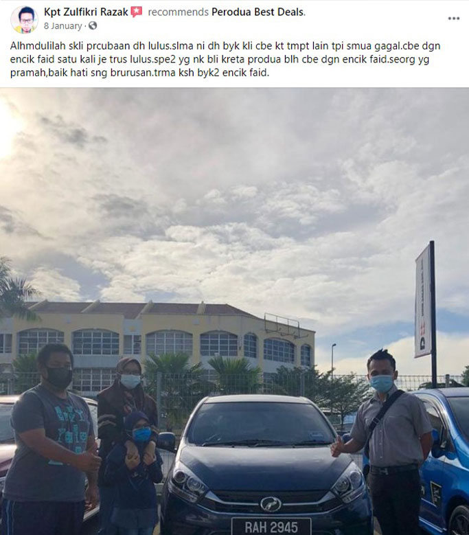 Servis saya termasuk seluruh Semenanjung Malaysia — dari loan hingga kereta Perodua sampai ke tangan anda, saya uruskan semuanya.